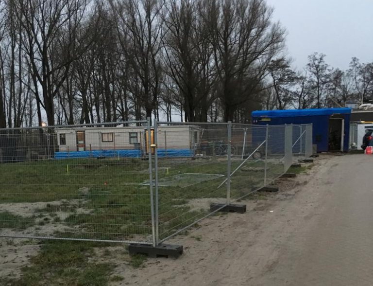 Dit bleek niet heel eenvoudig te zijn. Huren in de wijk vonden wij vrij prijzig en daarnaast wouden wij dicht bij de school van onze kinderen blijven wonen. Daarom besloten wij om iets te zoeken, waarin wij konden gaan wonen op onze kavel. De woning moest niet te groot zijn, anders zou het niet op de kavel passen. Het moest wel weer ruim genoeg zijn, aangezien we er met ons zessen in moeten gaan wonen. Uiteindelijk hadden we een tweedehands caravan in redelijk goede staat gevonden. Bij van Dieren in Genemuiden hebben wij een tweedehands bouwkeet gekocht, deze zou kunnen fungeren als berging waar op dit moment: fietsen, wasmachine,koelkast, vriezer en al ons gereedschap in staat.