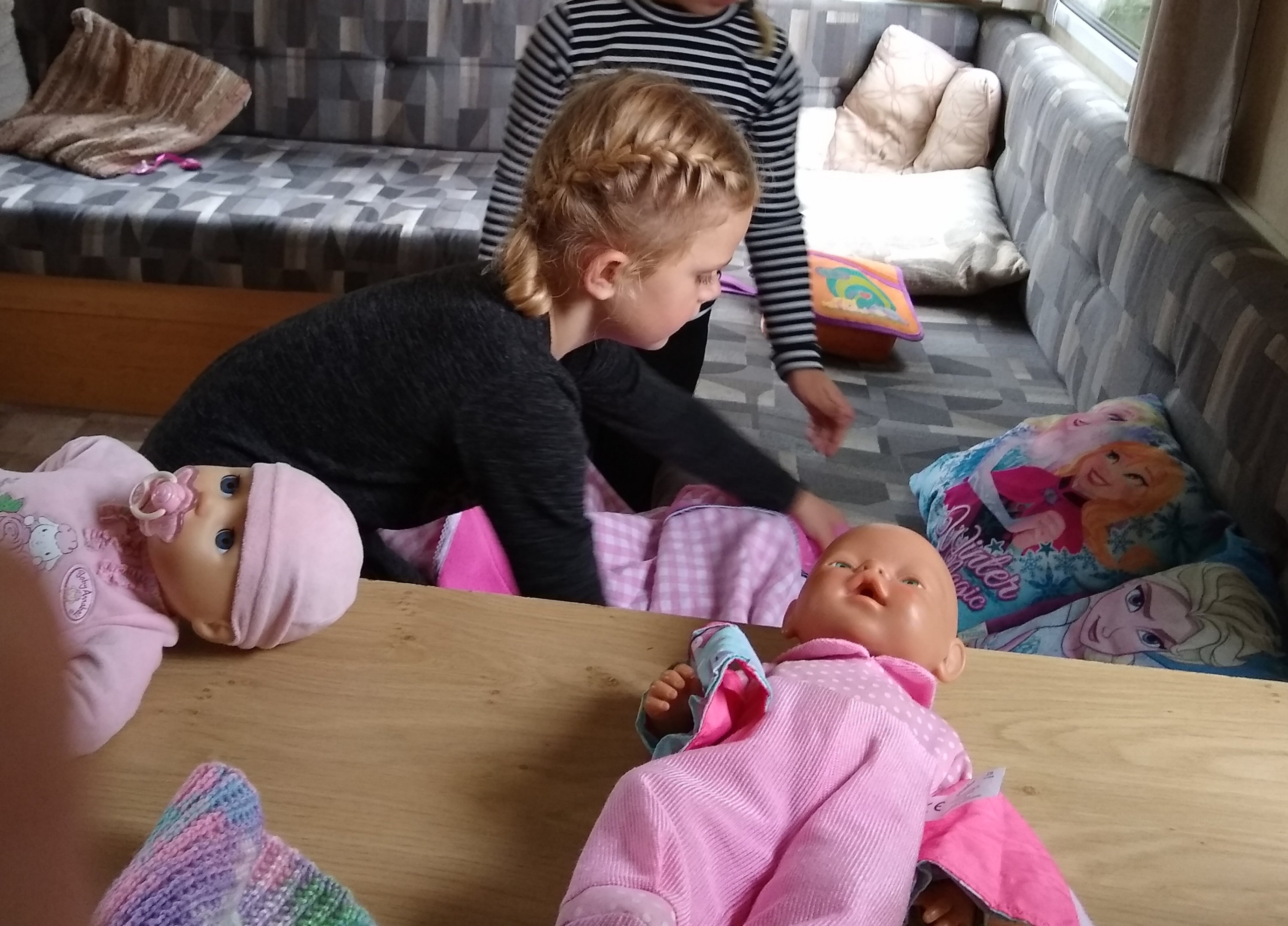 Ook voor de kinderen moest er praktisch gekeken worden welk speelgoed handig is in zo’n kleine ruimte. De kinderen spelen op dit moment veel met; poppen, knutsel spullen, tekenen, Playmobil, Duplo, verkleedkleren. Over het algemeen vermaken de kinderen zich prima. Ruimte voor een IKEA speelkeukentje en poppen wandelwagens is er uiteraard niet. Maar gelukkig zijn onze meiden sterren in fantaseren en spelen ze vaak een rollenspel.