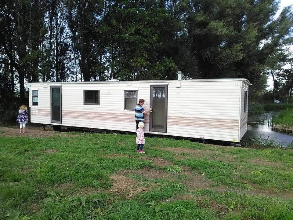 Daar waar de caravan zou komen te staan moest eerst gegraven worden. De grond was keihard en met een gewone schop bijna niet doorheen te komen. De aannemer regelde het graven waarna de caravan geplaatst kon worden. Met een kraan werd deze op de plek getild. Al met al nog even een spannend momentje aangezien de caravan verkeerd op de wagen stond en dus eerst gedraaid moest worden. Maar het lukte! Na een paar weken was alles klaar. De spullen waren van onze huidige woning naar ons nieuwe onderkomen verhuisd.