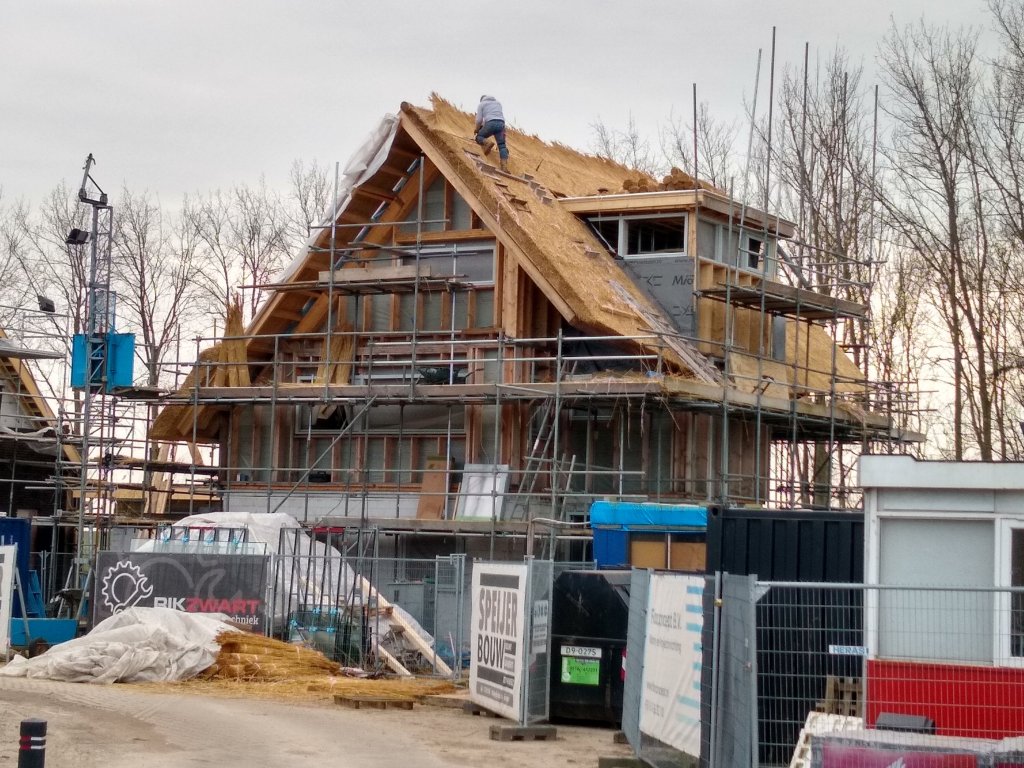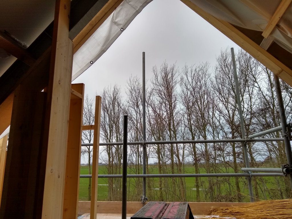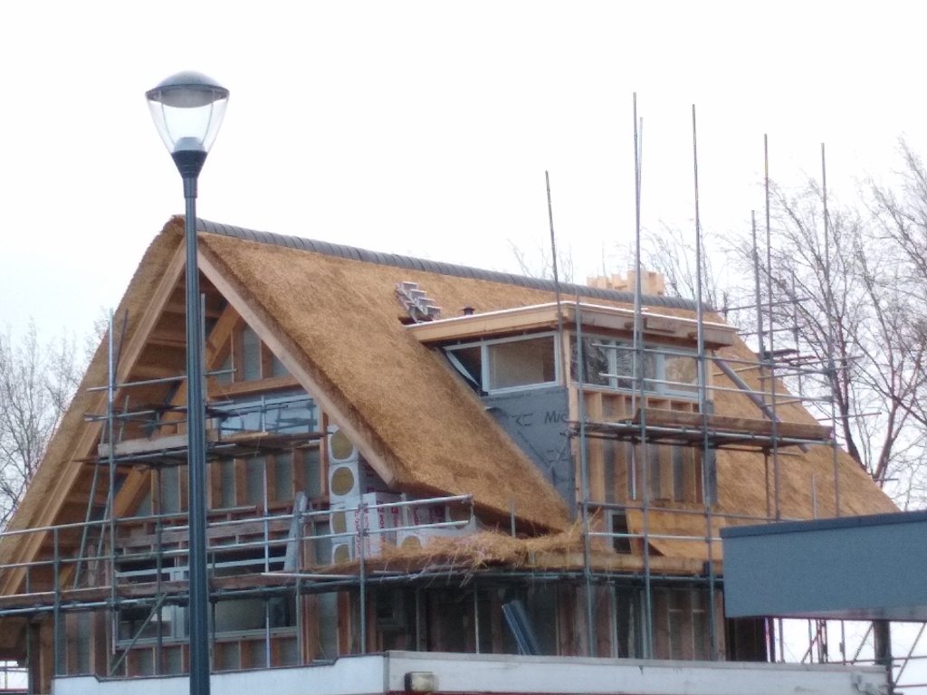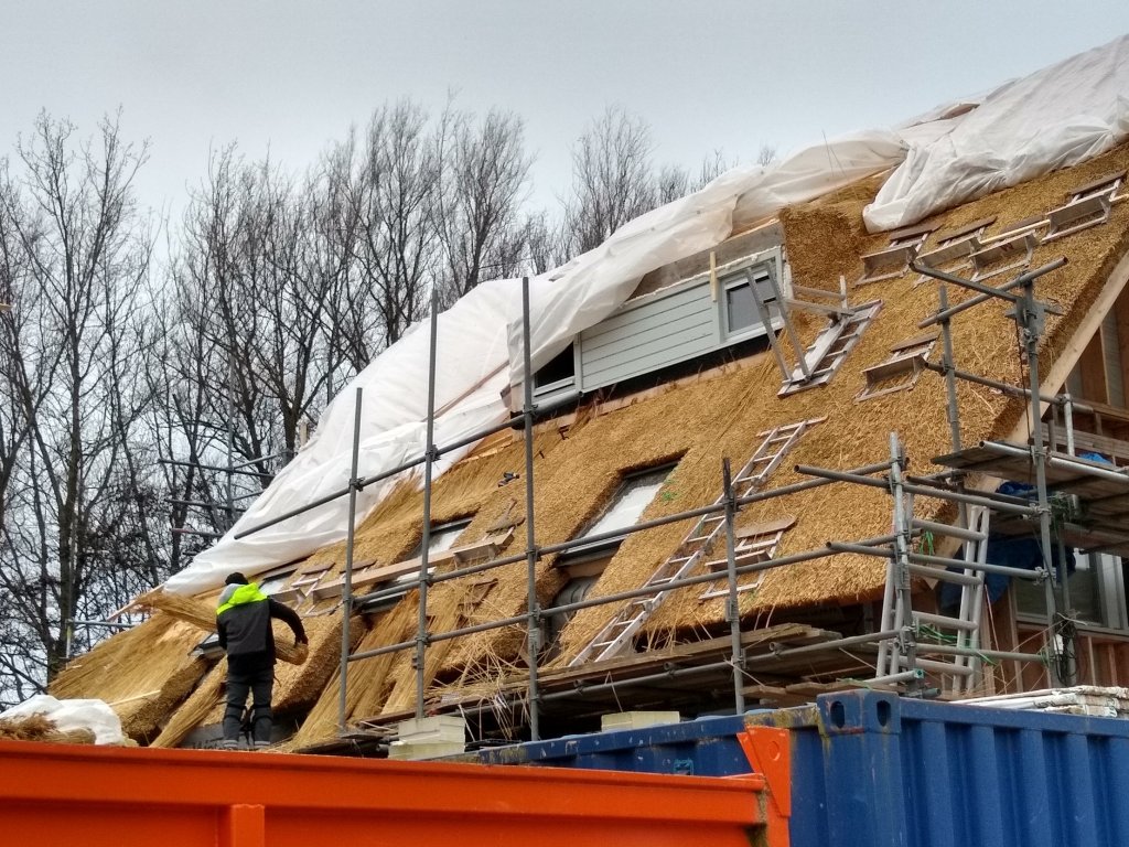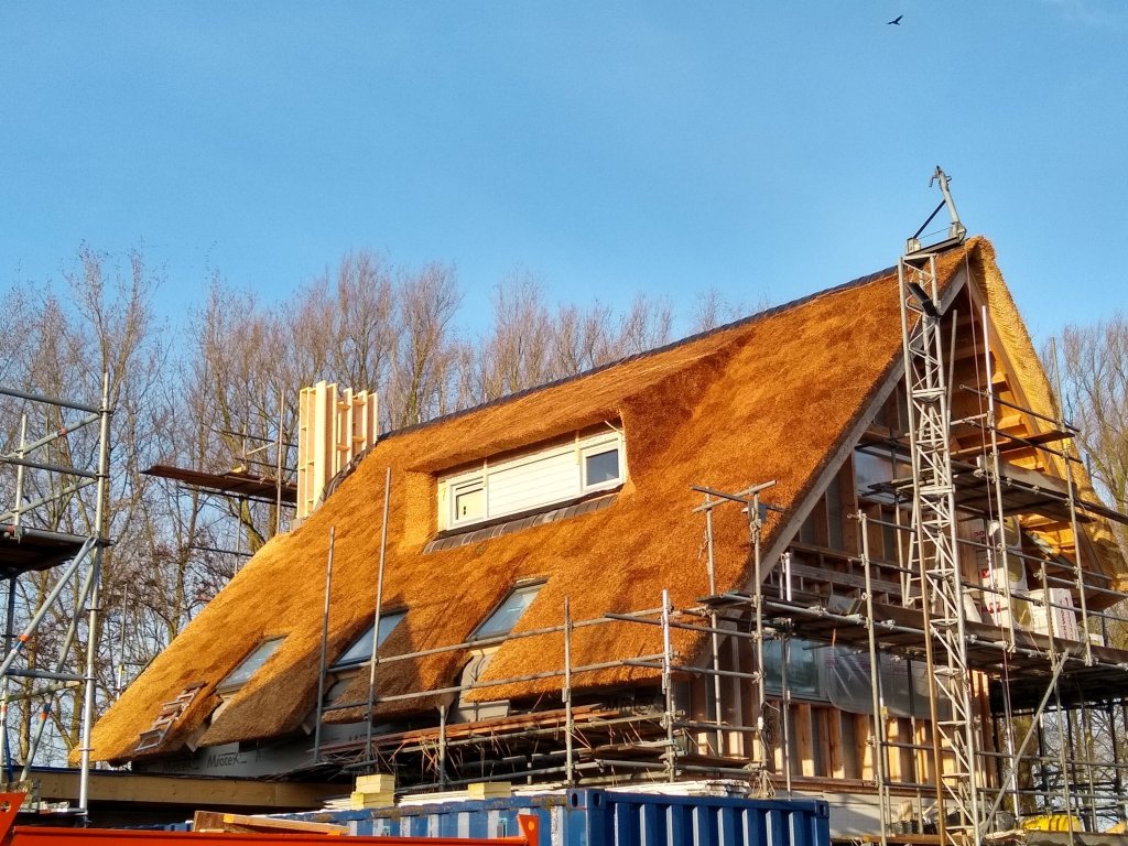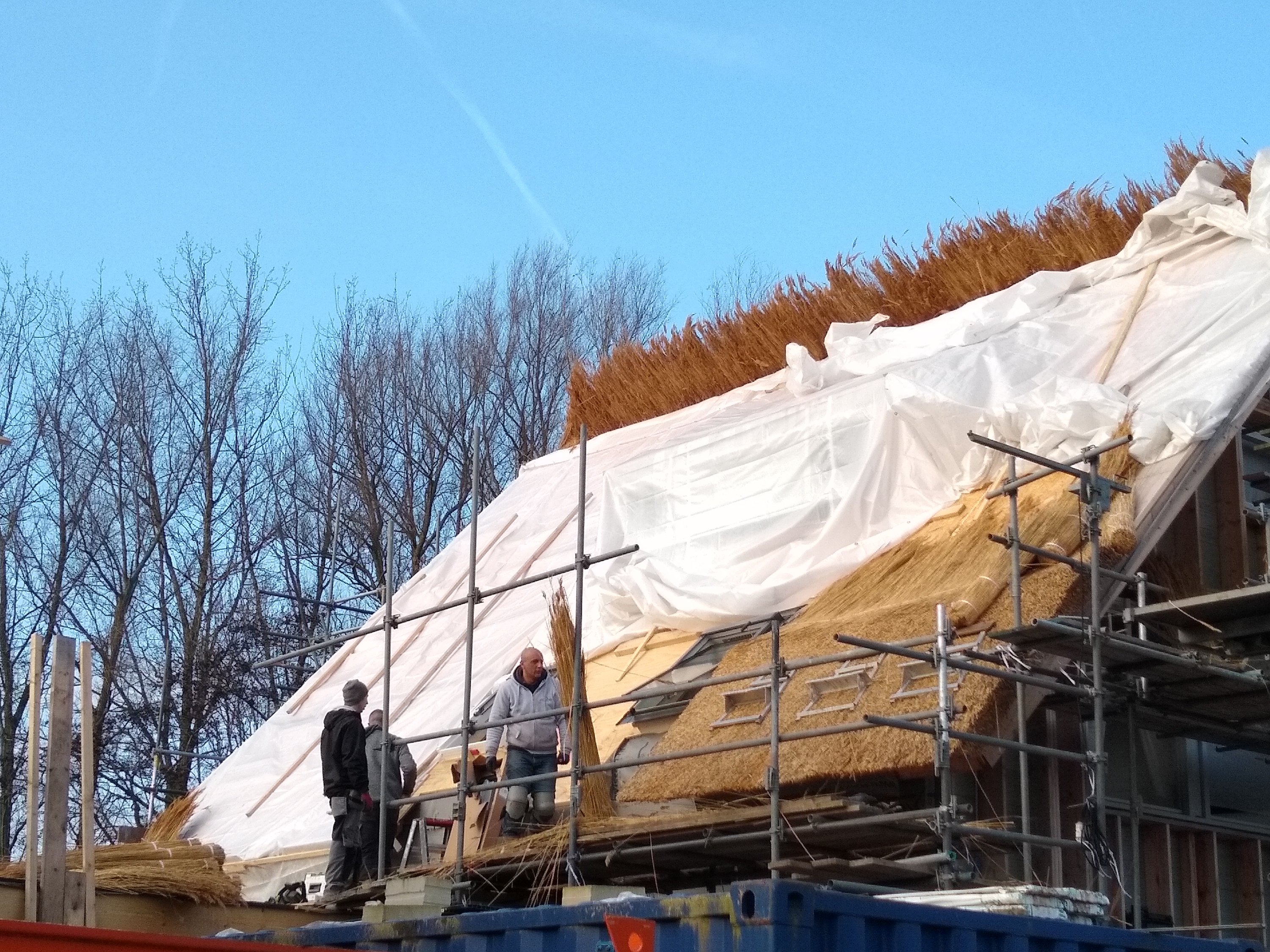 In weer en wind staan de rietdekkers het dak te bedekken met riet. Wat een vak! En wat een klus! Prachtig om te zien deze ambachtelijke klus.